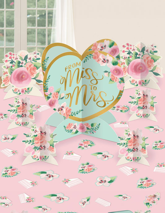 EpuizatSet de decorațiuni pentru masa de nuntă cu imprimeu Liberty, format din 27 de piese, de la domnișoară la doamnă.