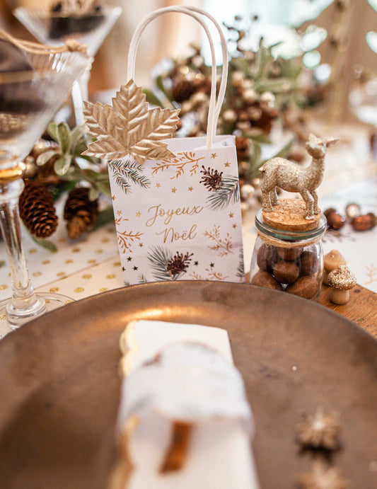 EpuizatFundă cu paiete șampanie, brad și conuri de pin 24 x 28 cm