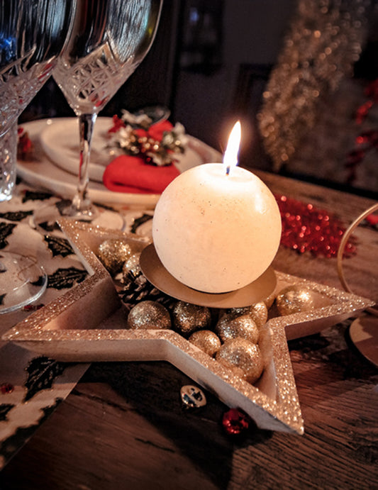 EpuizatSuport central din lemn, suport pentru lumânări în formă de stea, sclipici auriu, 24,5 cm de Crăciun