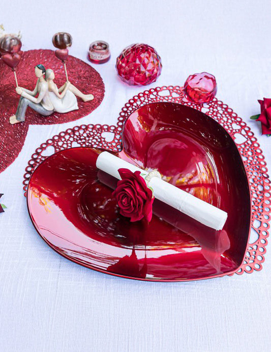 NouFarfurie de servire în formă de inimă din plastic roșu 35,4 cm