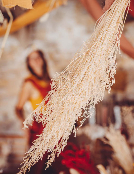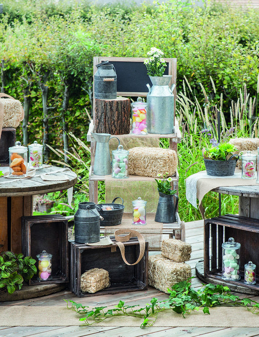 - Rustic și boem : Decoratiuni din lemn, iută, macrame și frunziș natural.