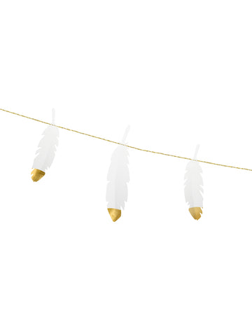 Ghirlandă din pene albe și aurii 13,5 cm decorațiuni de nuntă x 1,6 m
