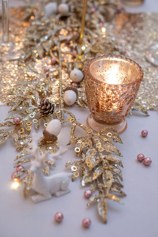 Alergător de masă în aur de trandafir metalic 28 cm x 5 m