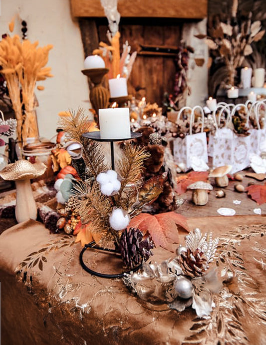 EpuizatSuport lumânare pentru plante cu flori de bumbac și sclipici auriu 20 cm metal