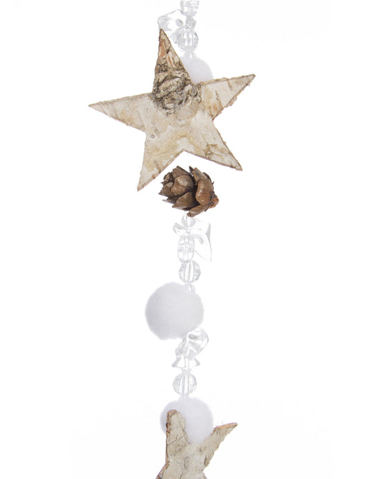 EpuizatGhirlandă din lemn cu stele și bile de bumbac 140 cm cu conuri de pin
