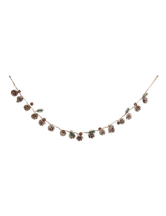 EpuizatGhirlandă strălucitoare din conuri de pin cu clopoței și un brad 130 cm pe o frânghie