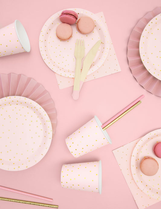 20 prosoape de hârtie roz pal cu puncte de polka aurii 33 x 33 cm