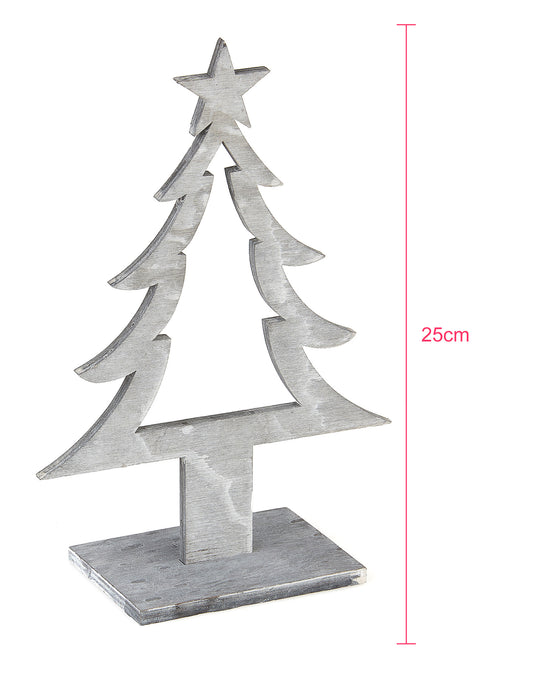 Decor de brad de Crăciun din lemn gri 25 x 11 x 8 cm