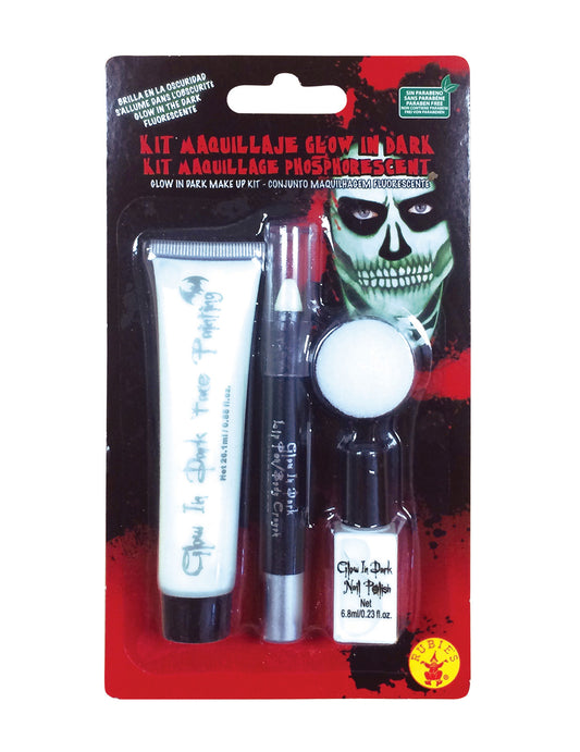 Inclus : 1 tub de machiaj fosforescent, 1 creion fosforescent, 1 tub de lac fosforescent, 1 burete
