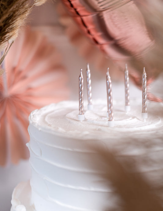12 bougies d'anniversaire rose gold métallique 7,5 cm avec supports