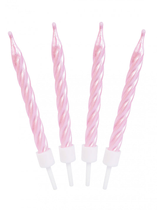 12 lumânări de aniversare roz fucsia cu sclipici 6 cm cu suporturi