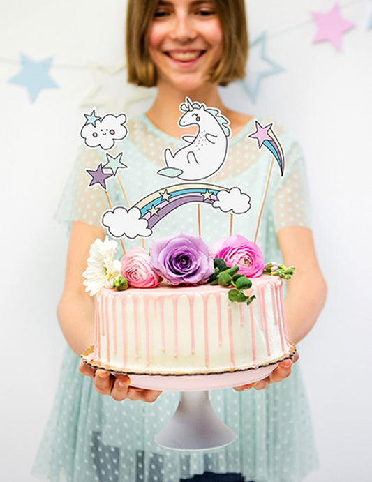 5 décorations pour gâteau sur pique licorne et arc-en-ciel 23,5 cm