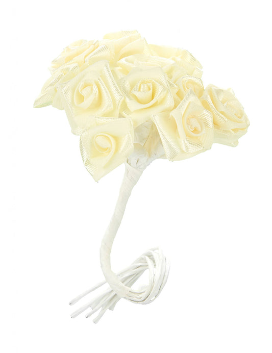 48 mini trandafiri din satin ivoire 1 x 8 cm pentru nuntă