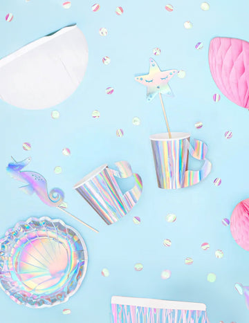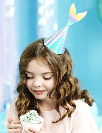 6 pălării festive ale cozii de sirenă holografică 8 x 18 cm