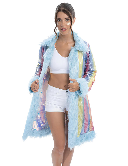 NouPalton albastru reversibil cu paiete și blană artificială pentru adult