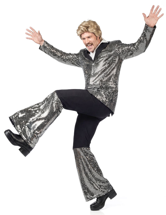 NouCostum disco argintiu de lux pentru bărbat