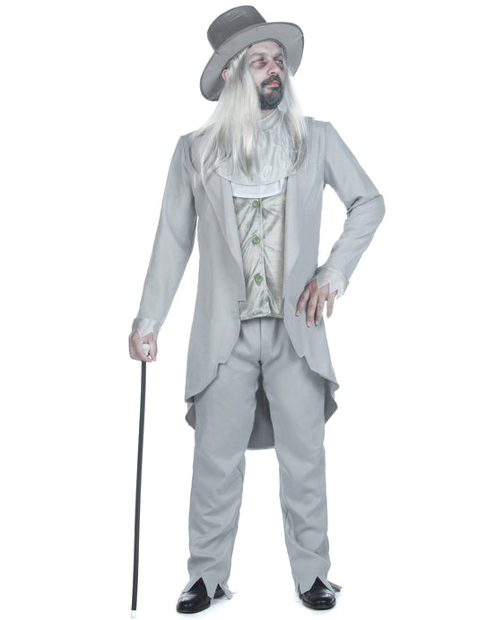 Inclus: pălărie, pantaloni, vestă, plastron, sacou