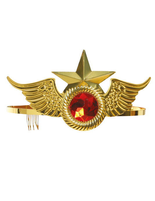 Banda de cap din metal de aur cu o femeie de piatră roșie super eroină