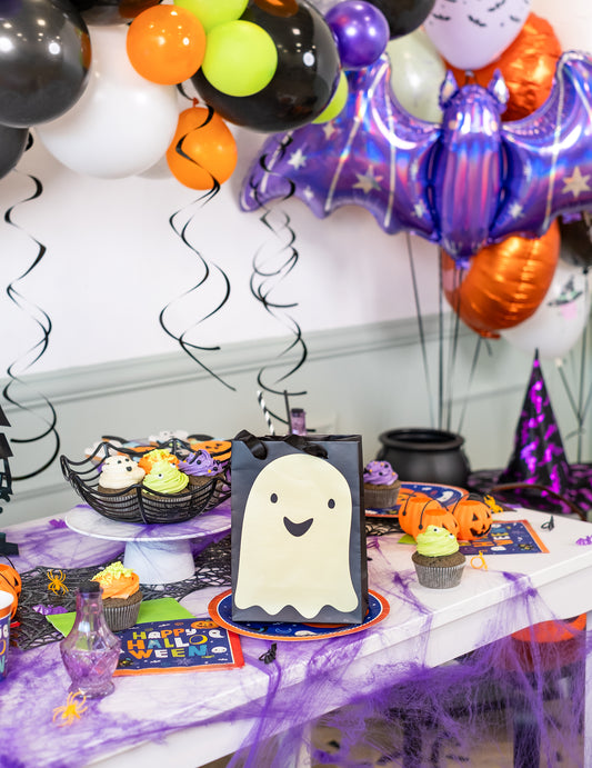 Te-ai hotărât să sărbătorești Halloween-ul acasă anul acesta? Surprinde-ți invitații, familia și prietenii cu decorațiuni de Halloween demne de un castel bântuit! Cearșafuri vechi negre, pânze de păianjen, baloane negre, dovleci și cranii... alege-ți stilul și împodobește-ți sufrageria pentru o petrecere de Halloween de neuitat! Și pentru ca totul să fie perfect, nu uita de decorațiunile pentru masă! Pentru cea mai terifiantă cină din viața ta, alege între pahare de Halloween, șervețele de dovleac sau un suport surprinzător pentru tort cu cranii... O petrecere de Halloween reușită depinde și de atmosfera potrivită, așa că dă-i drumul!