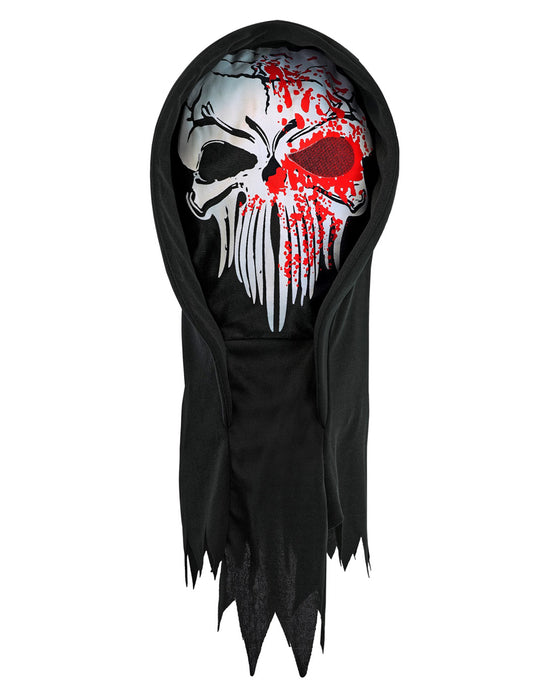 În mască de față invizibilă cu glugă plină și ochi roșii adulți