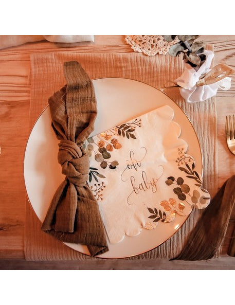 16 șervețele de hârtie Oh Baby Eucalyptus cu garnitură aurie, 33 x 33 cm cm festonat