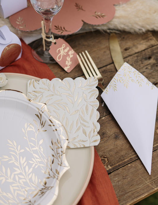 Epuizat20 șervețele de cocktail din hârtie albă și aurie, cu un model festonat de frunze