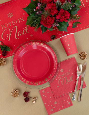 Épuisé10 assiettes en carton rouge flocon d'or 22,5 cm pour noël
