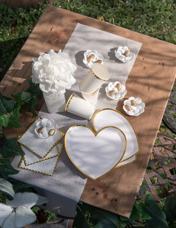 10 assiettes carton cœur blanc et or 22,5 x 20 cm pour baptême et fête