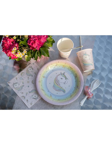 Épuisé10 assiettes en carton boy or girl 23 cm turquoise doré