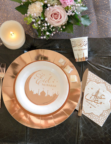 10 assiettes en carton Eid Mubarak rose gold 23 cm motif palais