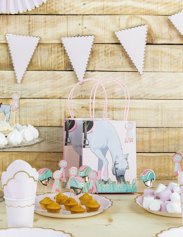 6 habillages moules à cupcake cheval bleu et rose pastel
