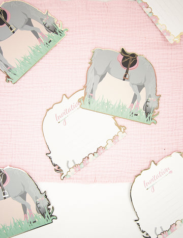8 invitations avec enveloppes joli cheval anniversaire fille