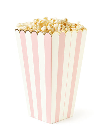 Épuisé8 boîtes à pop corn rose pastel et blanche 12,5 x 7 cm en carton rayé doré