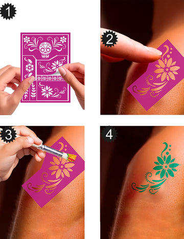 Inclus : Peinture pour visage , Applicateurs , Eponge , Crayon , Tatouage temporaire pour visage , Autocollant bijoux