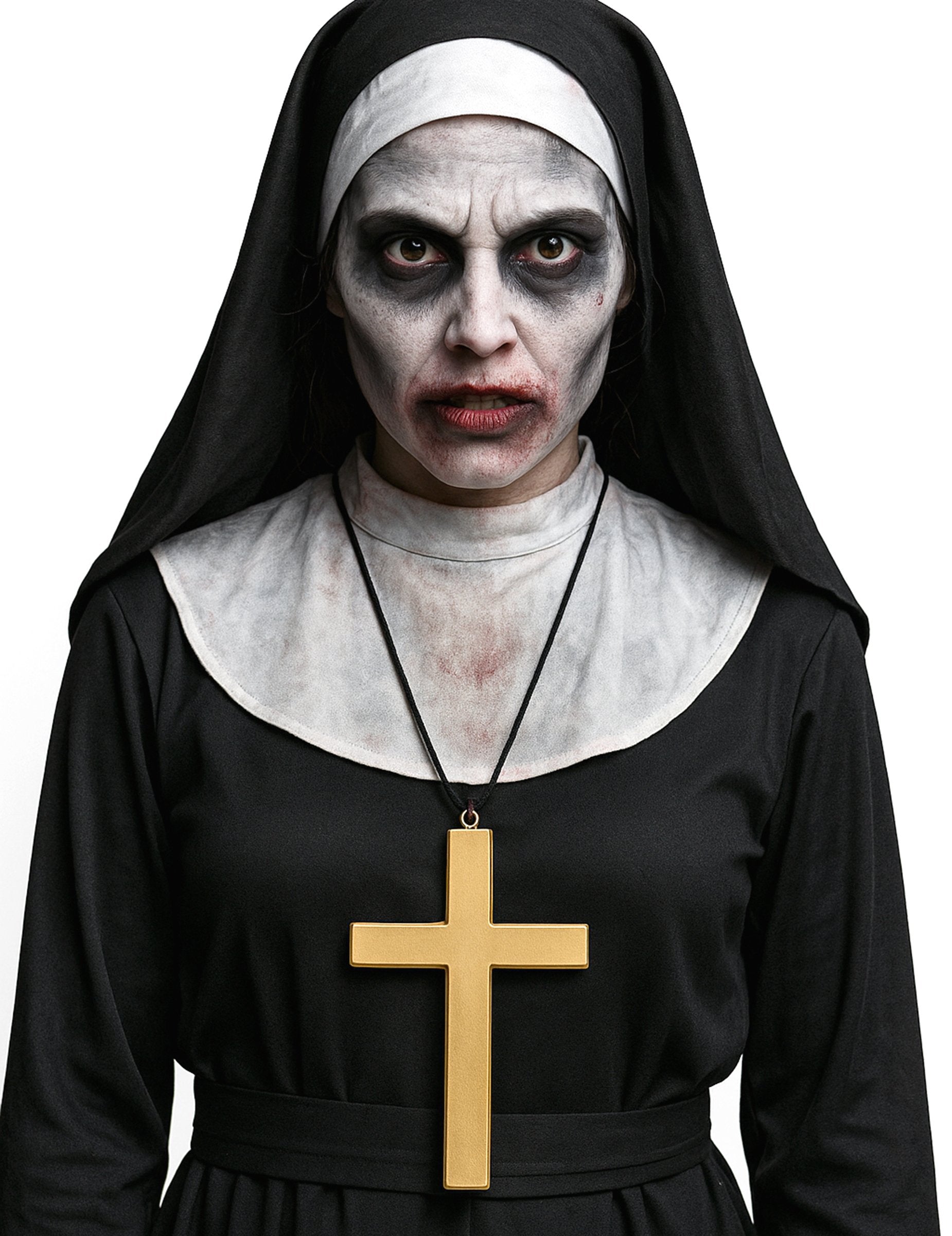 Această cruce de călugăr de culoare aurie este din plastic. Are 23 cm înălțime și 13 cm lățime. Crucea este lègere, așa că o poți purta mult timp fără cel mai mic rău. Accesoriu ideal pentru a -ți completa costumul preotului, niciunul pentru carnaval sau pentru o seară tematică.