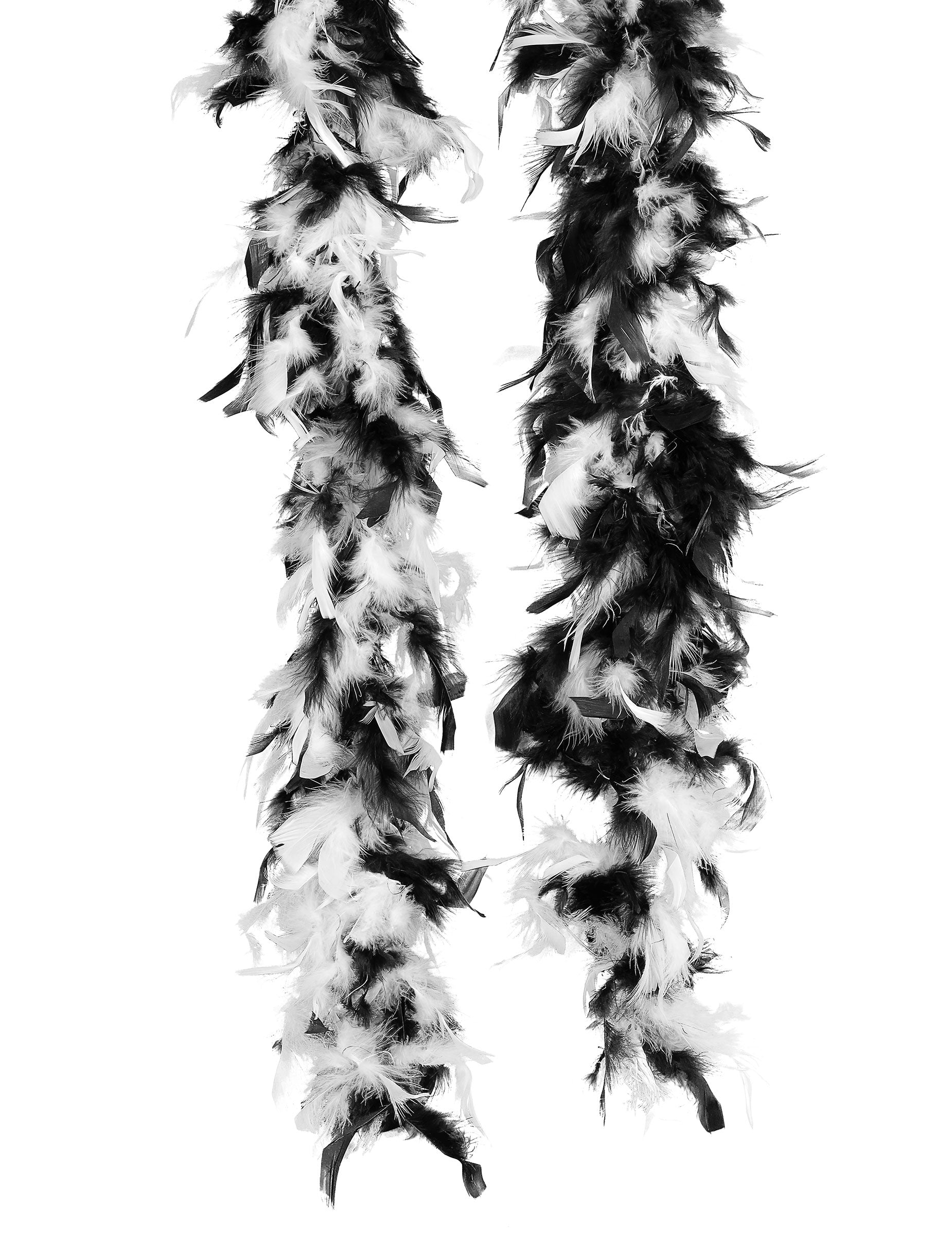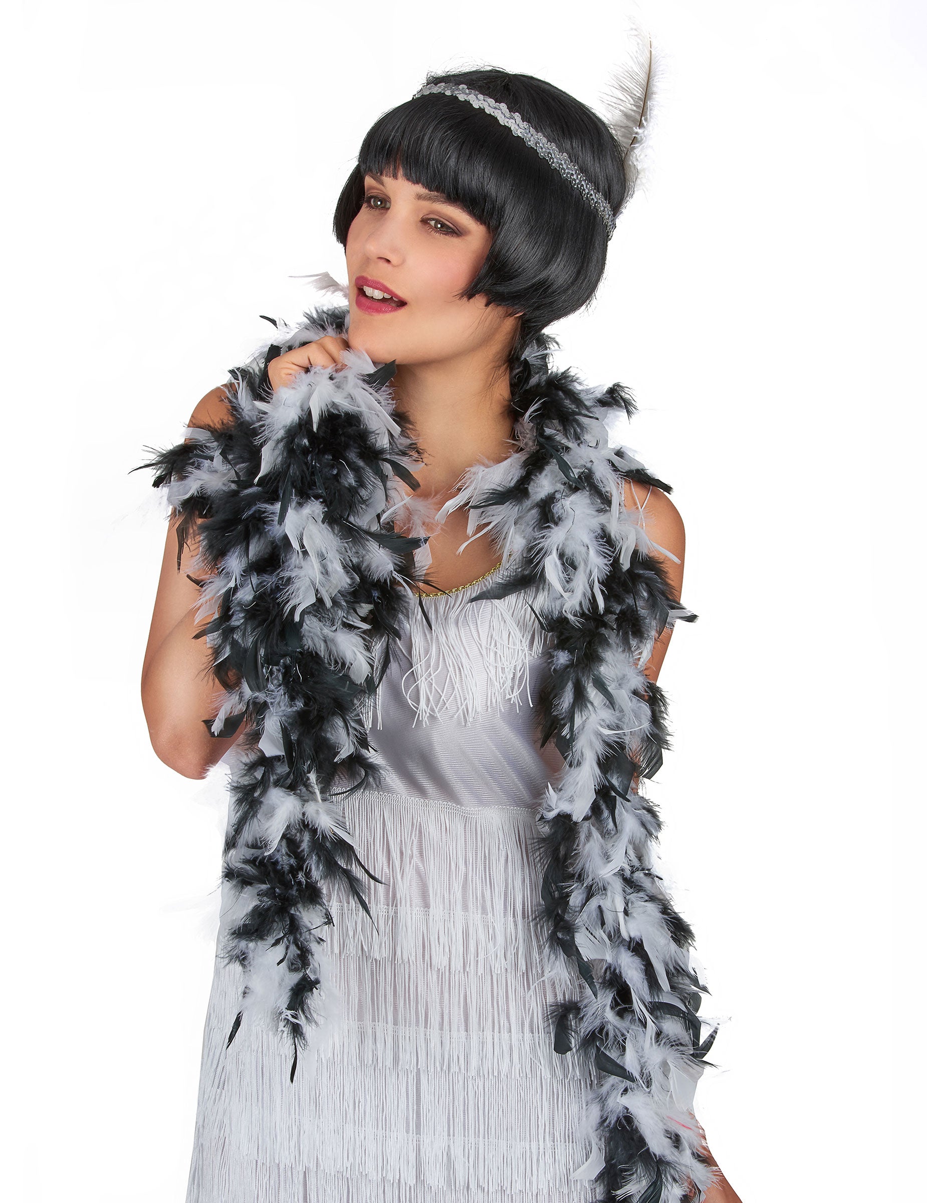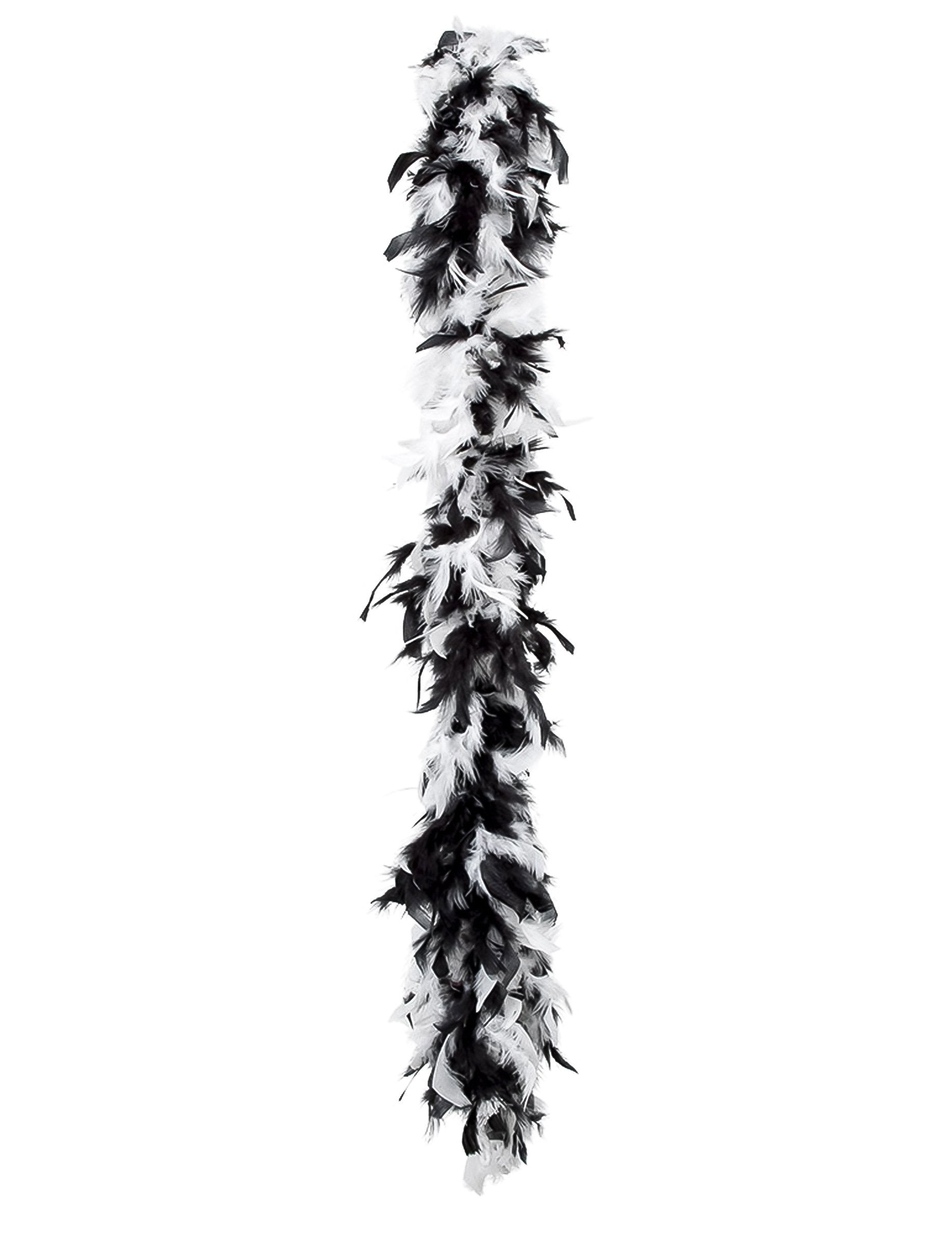 Această boa neagră cu sfârșitul anumitor pene cu vârf alb este pentru adulți. Măsoară 1 m 80 și cântărește 45 de grame. Perfect pentru a vă îmbunătăți costumele în ziua carnavalului.