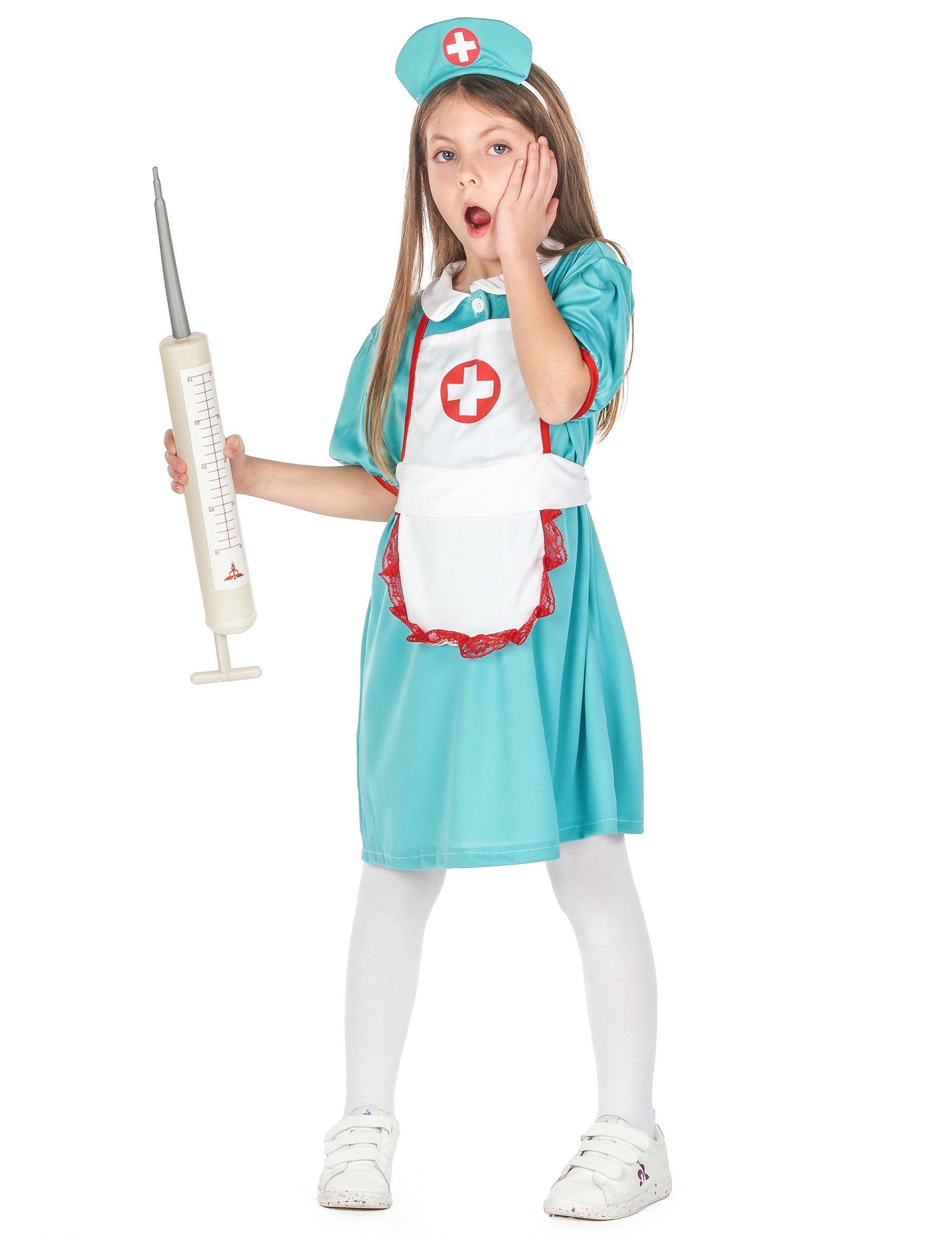 Acest costum de asistentă pentru fată este format dintr -o rochie. Rochia este verde, cu un șorț alb pe care este cusută o cruce și marginile roșii la capete. Ținuta include, de asemenea, o șapcă potrivită (seringă și încălțăminte nu sunt incluse). Acest costum va fi ideal pentru carnaval sau pentru orice alt eveniment deghizat.