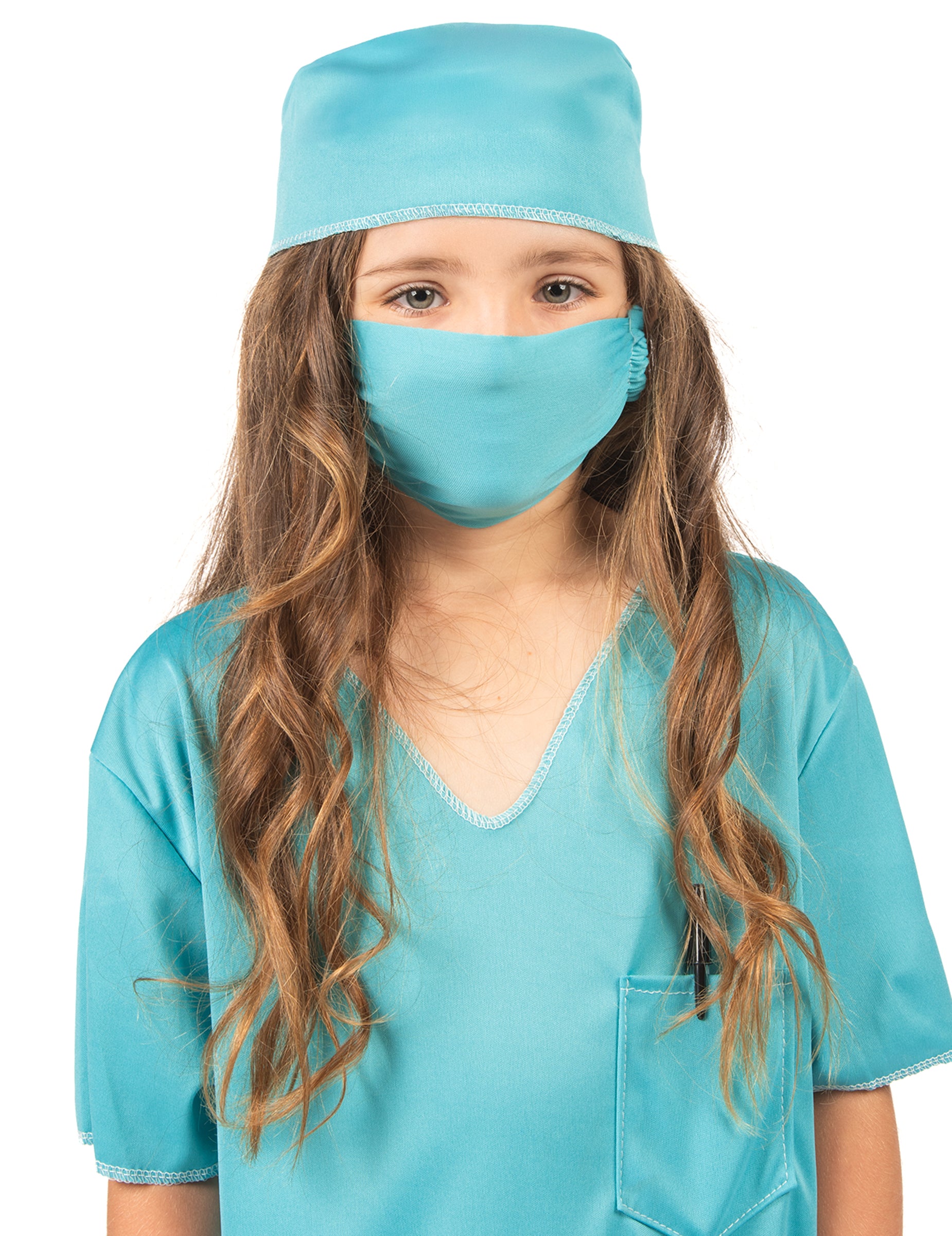 Acest costum chirurg pentru copii include tricoul, pantalonii, coafura potrivită și masca de protecție. Tricoul cu mâneci scurte este ușor, într-o nuanță turcoaz caracteristică mediului medical. Pantalonii curgători și confortabili se potrivesc perfect cu partea de sus pentru a forma o ținută completă. Coafura, de aceeași culoare, stă pe cap și completează ansamblul. Masca de potrivire este așezată cu ușurință pe partea inferioară a feței pentru a consolida aspectul unui mic îngrijitor. Costumul chirurgului acestui copil va fi ideal pentru un carnaval, o petrecere școlară sau un joc de rol în jurul profesii.