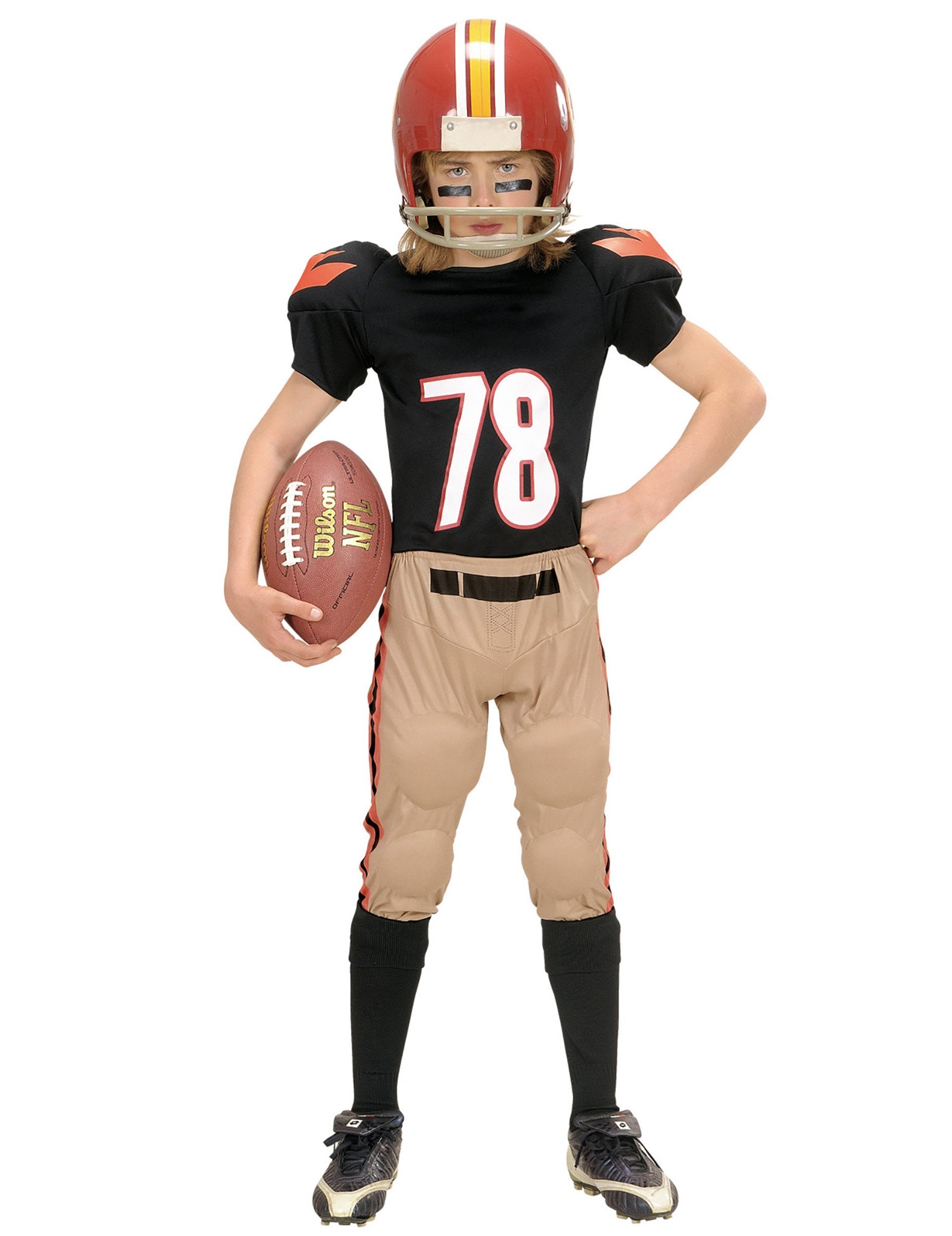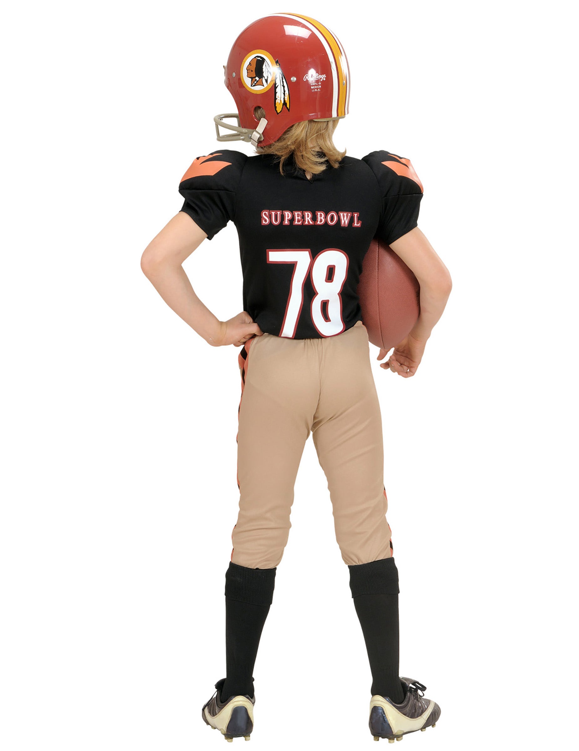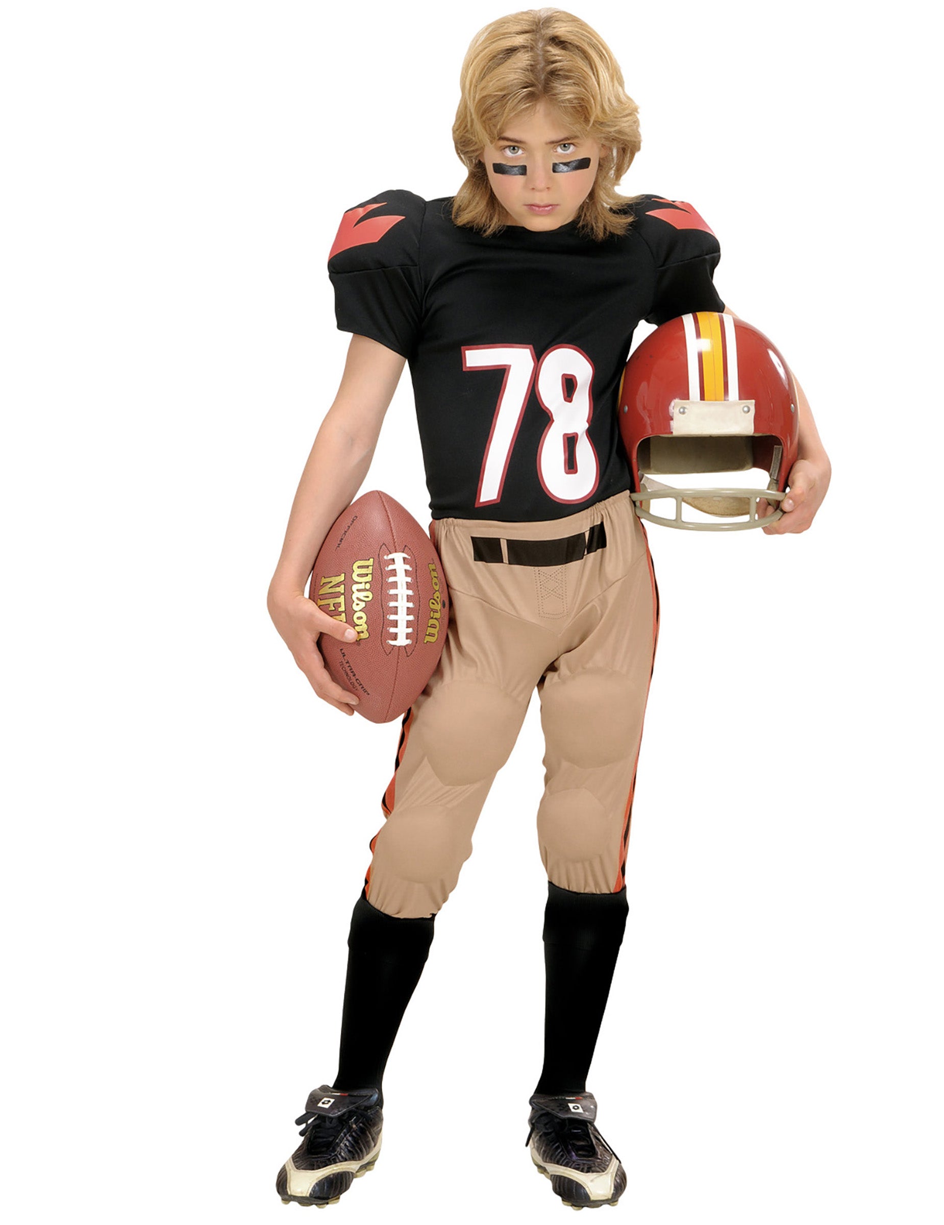 Costumul acestui fotbalist american pentru băiat este format dintr-un tricou și pantaloni. Tricoul este căptușit cu umerii și este elastic pentru a se adapta morfologiei copilului tău. Pantalonii, de asemenea, elastici, se potrivesc și ajunge chiar sub genunchi (cască, balon, machiaj, șosete și încălțăminte nu sunt incluse). Acest costum va fi ideal pentru carnaval sau pentru orice alt eveniment deghizat. Copyright Widmann Srl. Copyright Widmann Srl