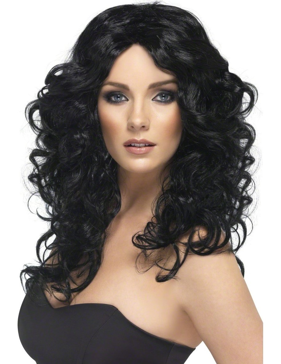 Această perucă magnifică este neagră, lungă și completată. Optați pentru o coafură demnă de cele mai mari stele în timpul serilor voastre deghizate.