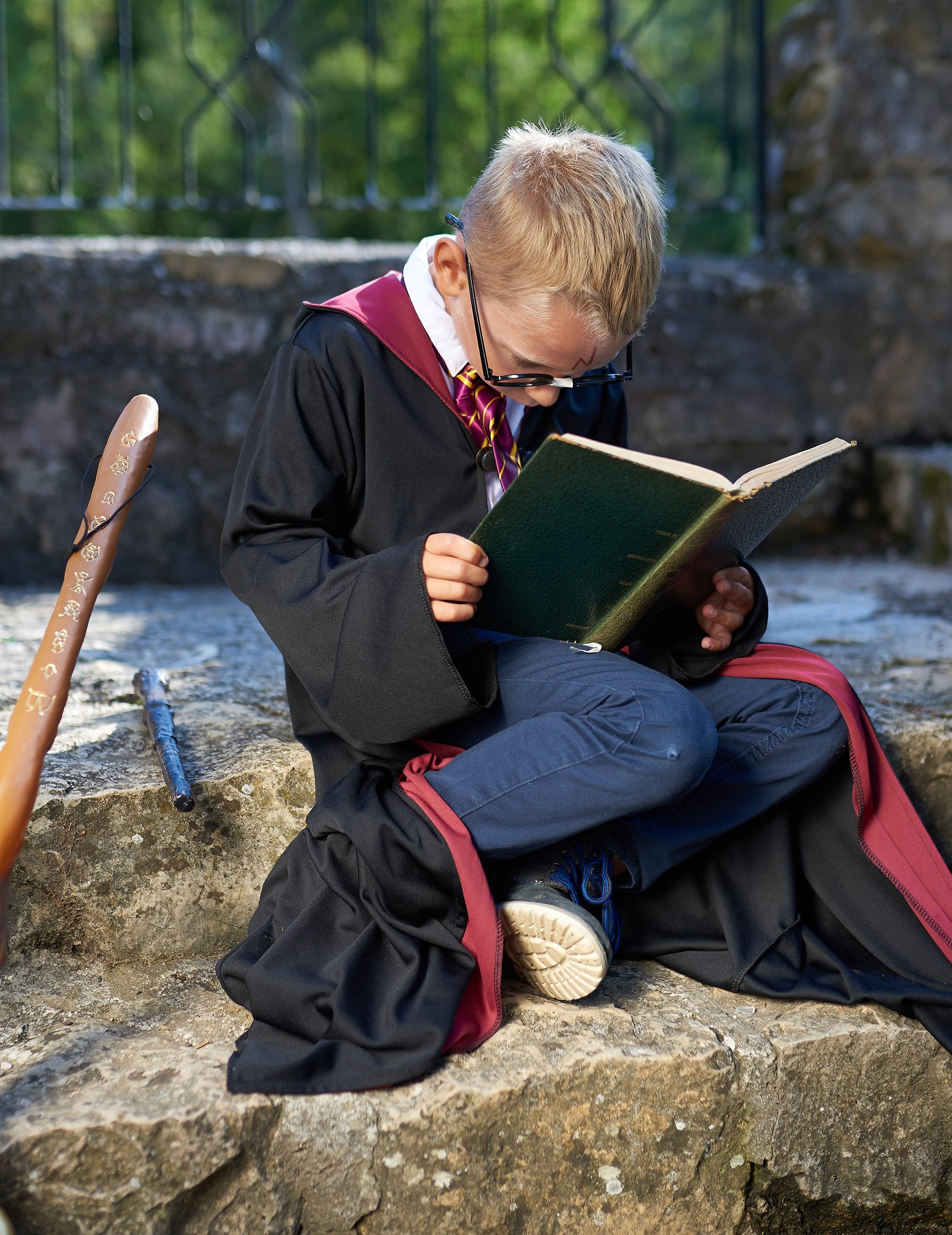 Această deghizare sub licența oficială Harry Potter este formată dintr -o rochie, o pereche de pahare și un baguetă de vrăjitor (cravată, cămașă și pantofi nu sunt incluse). Această rochie este neagră, liberă, cu hota și ecusonul școlii Hogwarts cusute la nivelul pieptului. Are o lungime de aproximativ 100 cm fără capotă. Ținuta include, de asemenea, o pereche de pahare rotunde și un baguetă de vrăjitor Acest costum va fi ideal pentru a întruchipa celebrul ucenic al vrăjitorului în ziua carnavalului sau cu ocazia oricărui alt eveniment deghizat.