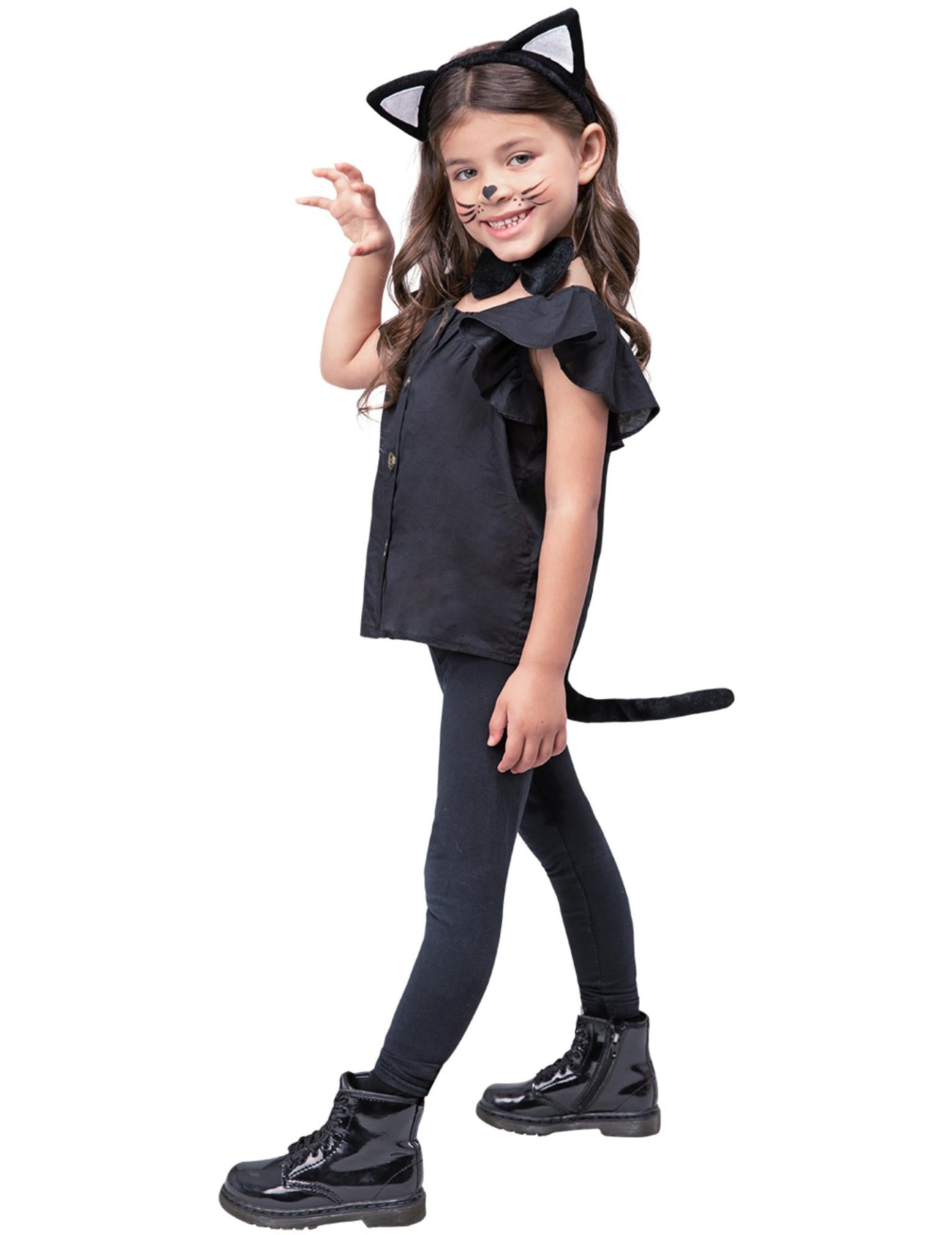 Acest kit de pisici pentru copii este format dintr -o bandă pe care sunt fixate două urechi, un gât cu papion care se atașează folosind o zgârietură și o coadă de aproximativ 20 cm cu elastic (îmbrăcăminte, colanți și machiaj nu sunt incluse). Acest kit va fi ideal pentru copilul tău să întruchipeze o pisică în timpul unei gustări de ziua deghizată sau pentru carnaval.
