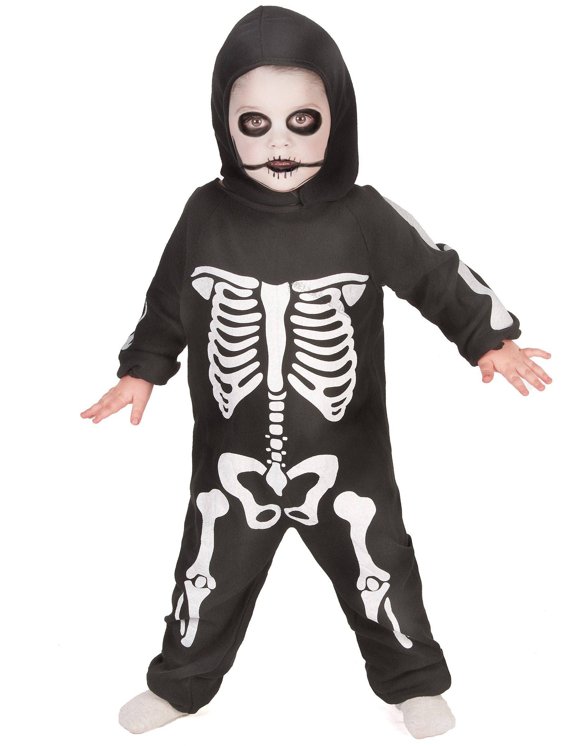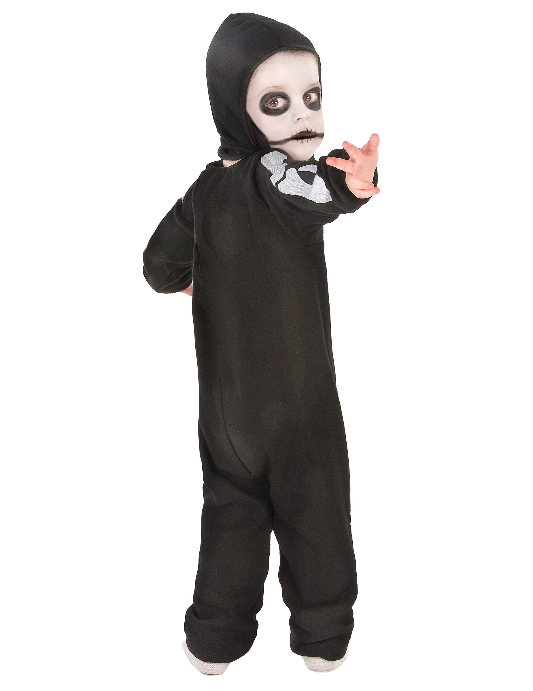 Acest costum complet de schelet pentru băieți include o salopetă cu glugă neagră, decorată cu un grafic osoasă contrastant pe față. Confortabil datorită materialului său ușor, permite copiilor să se miște fără constrângere. Hota neagră integrată îmbunătățește aspectul înfricoșător și oferă un aspect fantomatic fără efort. Un costum ideal pentru a face o intrare măreață la Halloween sau pentru a te distra în timpul unui eveniment de rochie fantezistă.