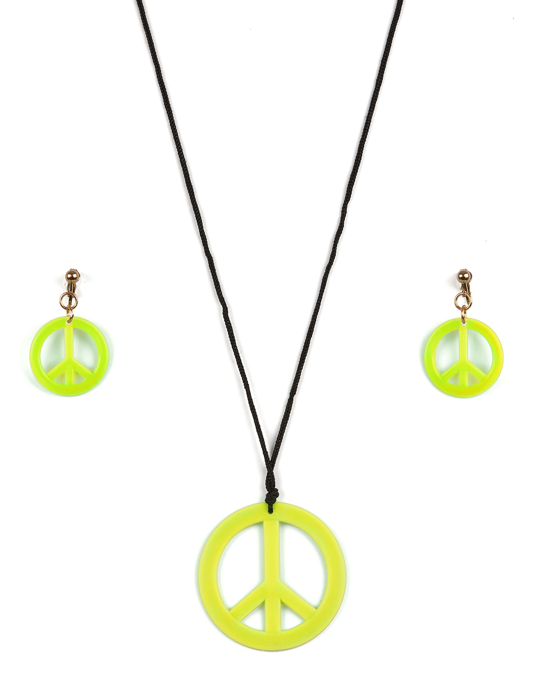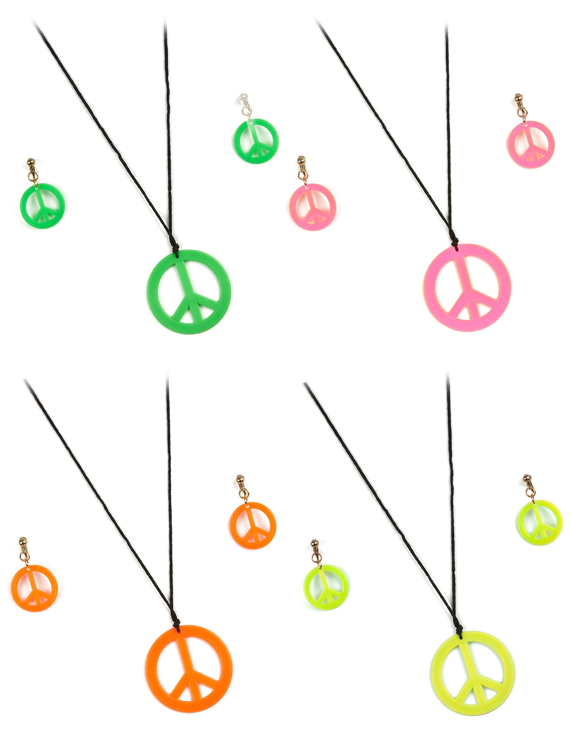 Acest kit hippie constă dintr -o pereche de cercei cu clipuri și un colier asortat reprezentând simbolul păcii și iubirii. Modelul este trimis la întâmplare. Acest accesoriu va fi perfect pentru finalizarea costumului de hippie în timpul serilor de temă cu prietenii. Copyright Widmann Srl. Copyright Widmann Srl