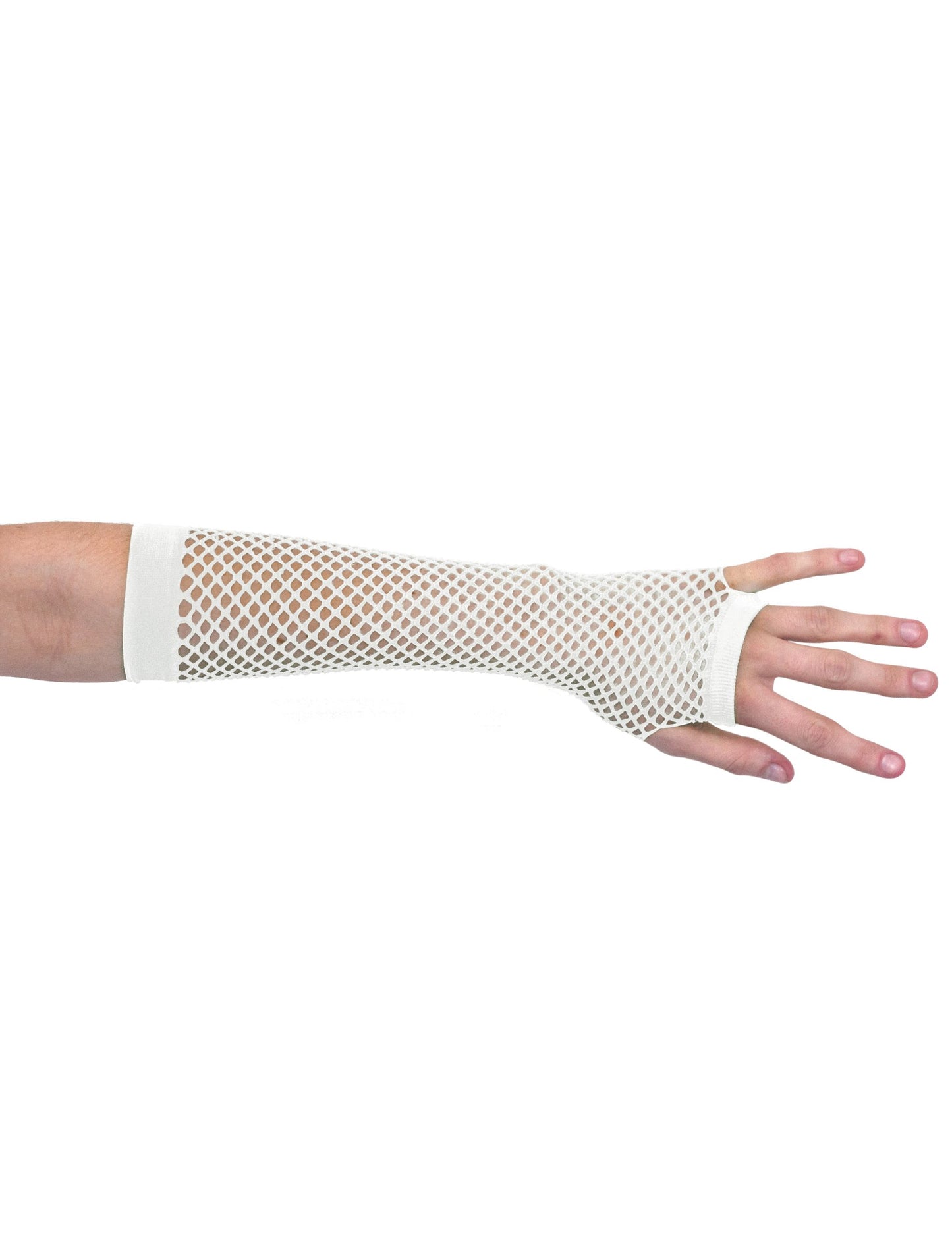 Aceste mittene obositoare albe acoperă întregul față al brațului. Ei țin de elastice la capete. Acest accesoriu este ideal pentru completarea unui costum balansoar, de exemplu.