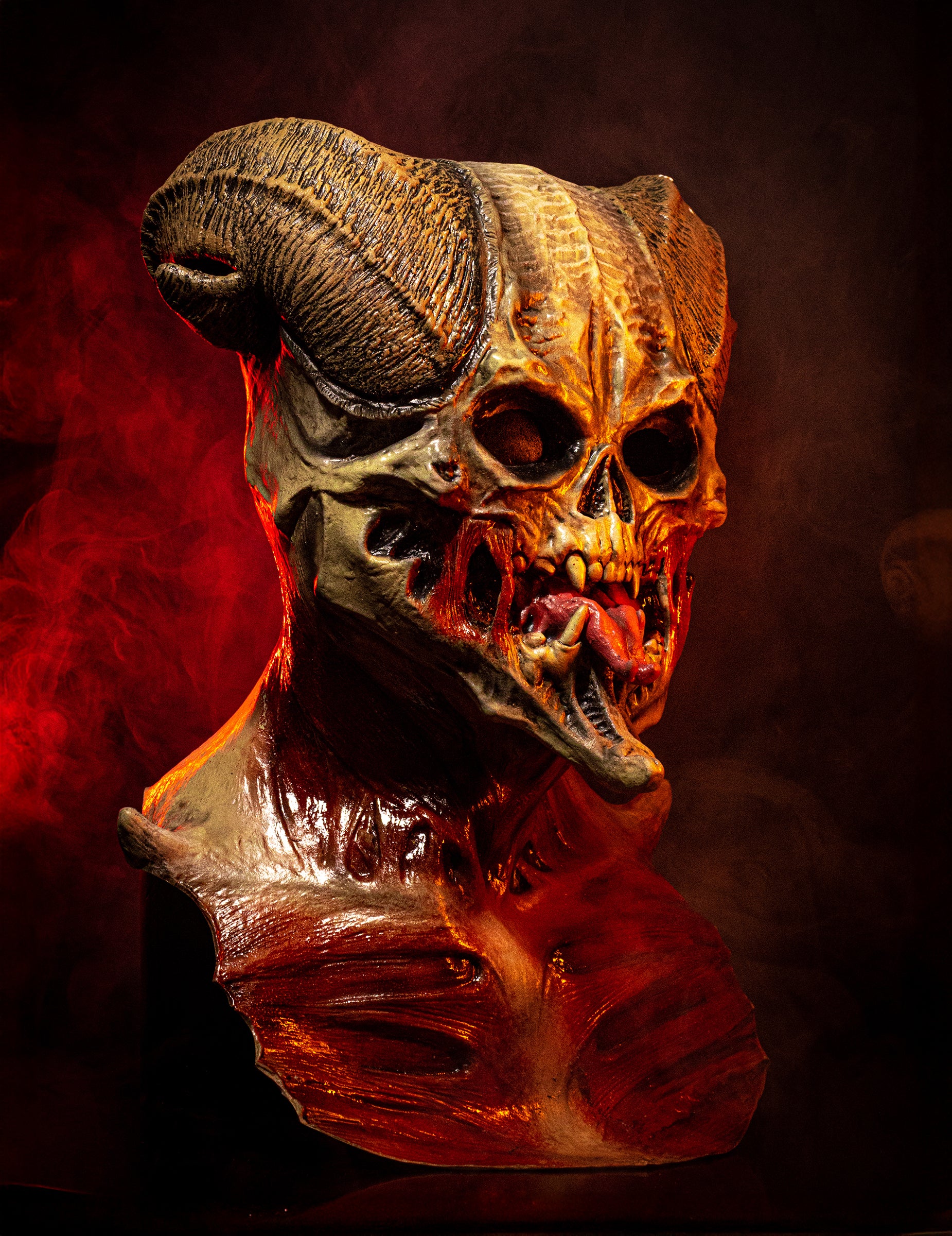 Această mască completă din latex reprezintă craniul unui diavol cu ​​un efect de schelet sângeros asupra pieptului. Acest accesoriu pictat manual este ideal pentru completarea deghizării în timpul serii tale de Halloween.