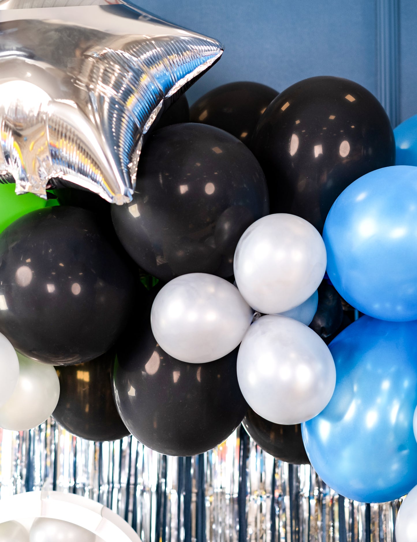 100 27 cm baloane negre. Aceste baloane sunt confecționate din cauciuc natural și complet biodegradabile.
