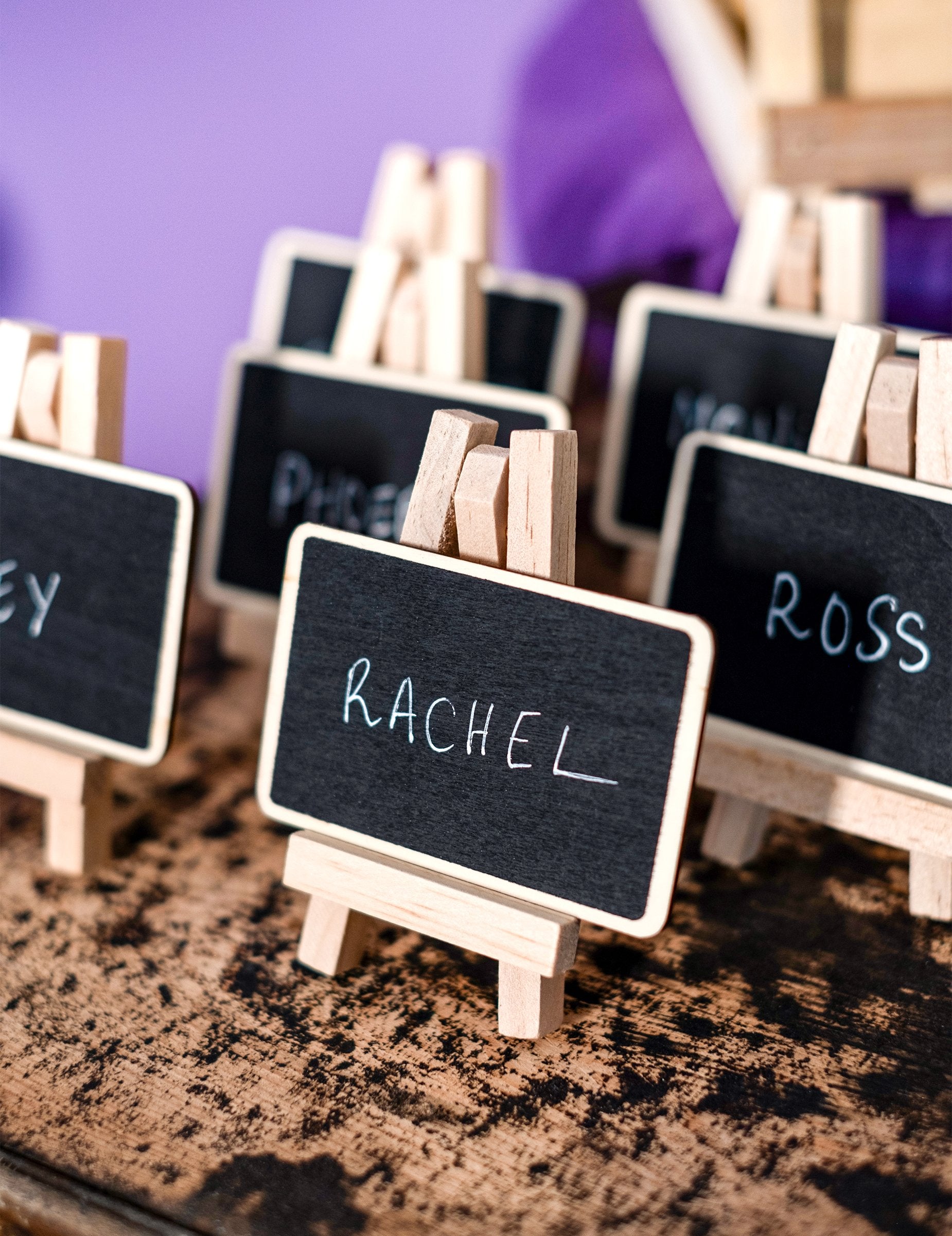Acest șevalet mic din lemn are o lățime de 6 cm și 10 cm înălțime. Datorită ardeziei sale, acest suport vă va permite să vă scrieți cuvintele mici sau numele oaspeților dvs. pentru a le plasa la masa dvs.