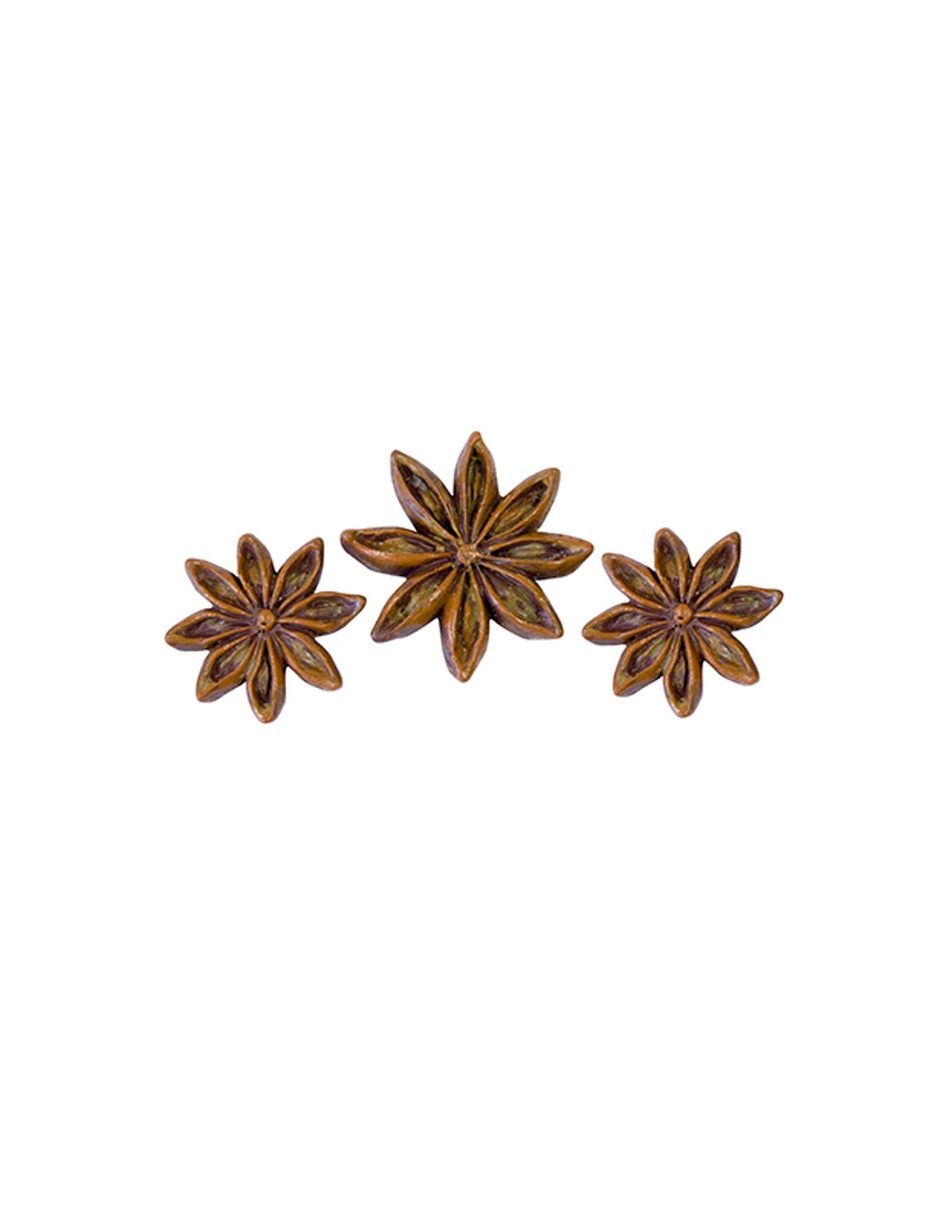 Acest lot este format din 6 decorațiuni înstelate. Aceste decorațiuni sunt confecționate din rășină brună. Au două dimensiuni diferite: 2,5 cm și 3 cm în diametru. Acest accesoriu este ideal pentru a aduce o notă naturală la decorarea mesei tale.