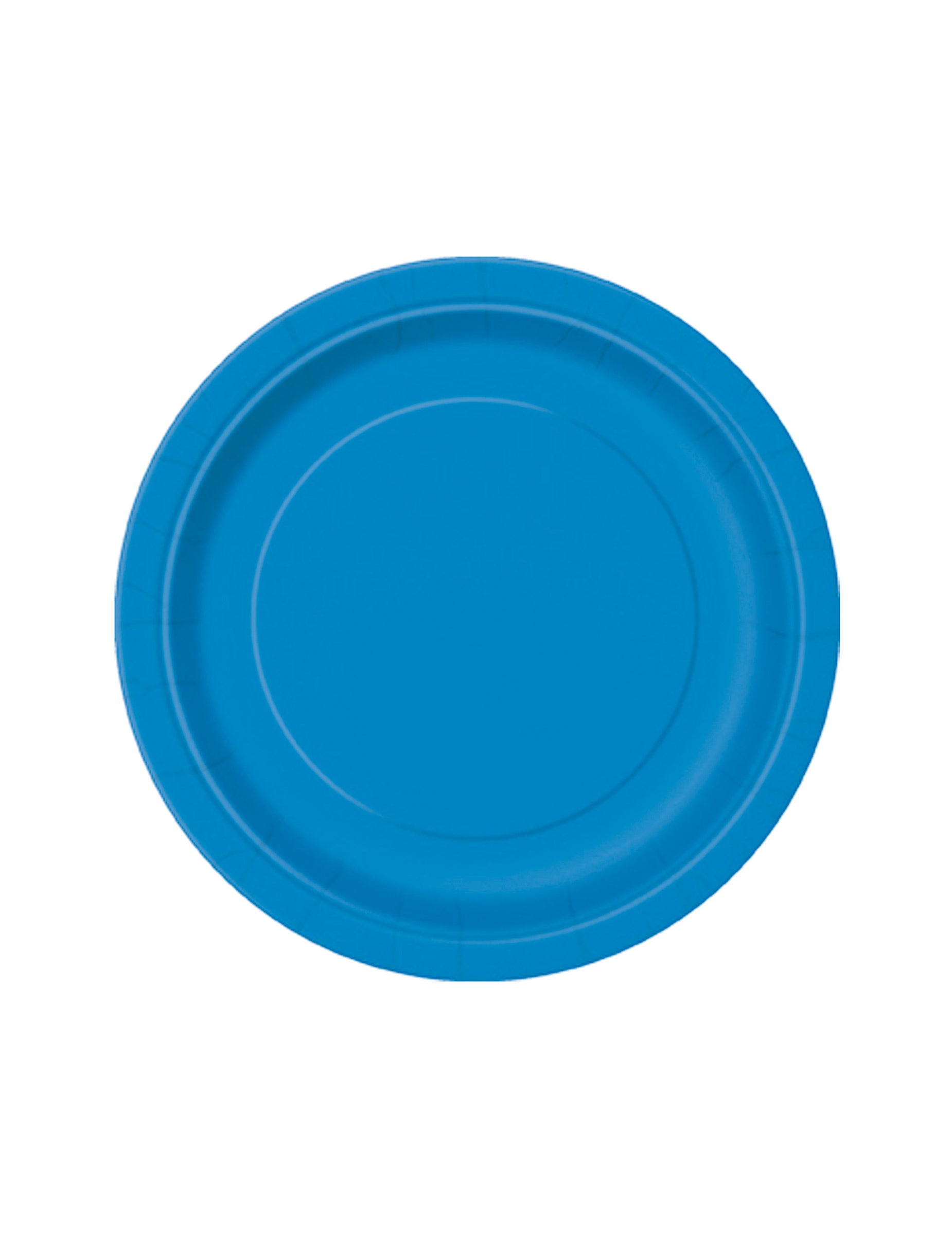 Acest set conține 20 de farfurii rotunde din carton de un albastru strălucitor, cu un diametru de 17 cm.